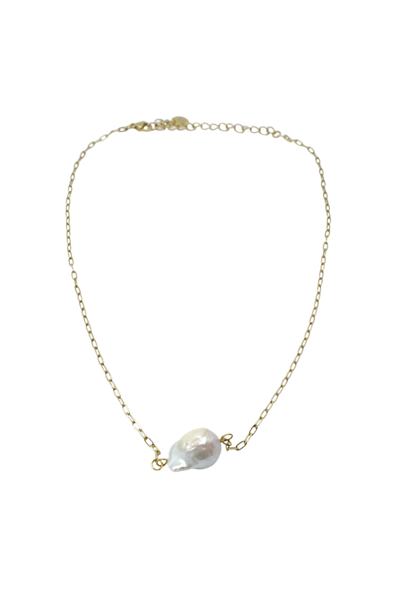 Gold-finished necklace featuring fresh baroque pearls