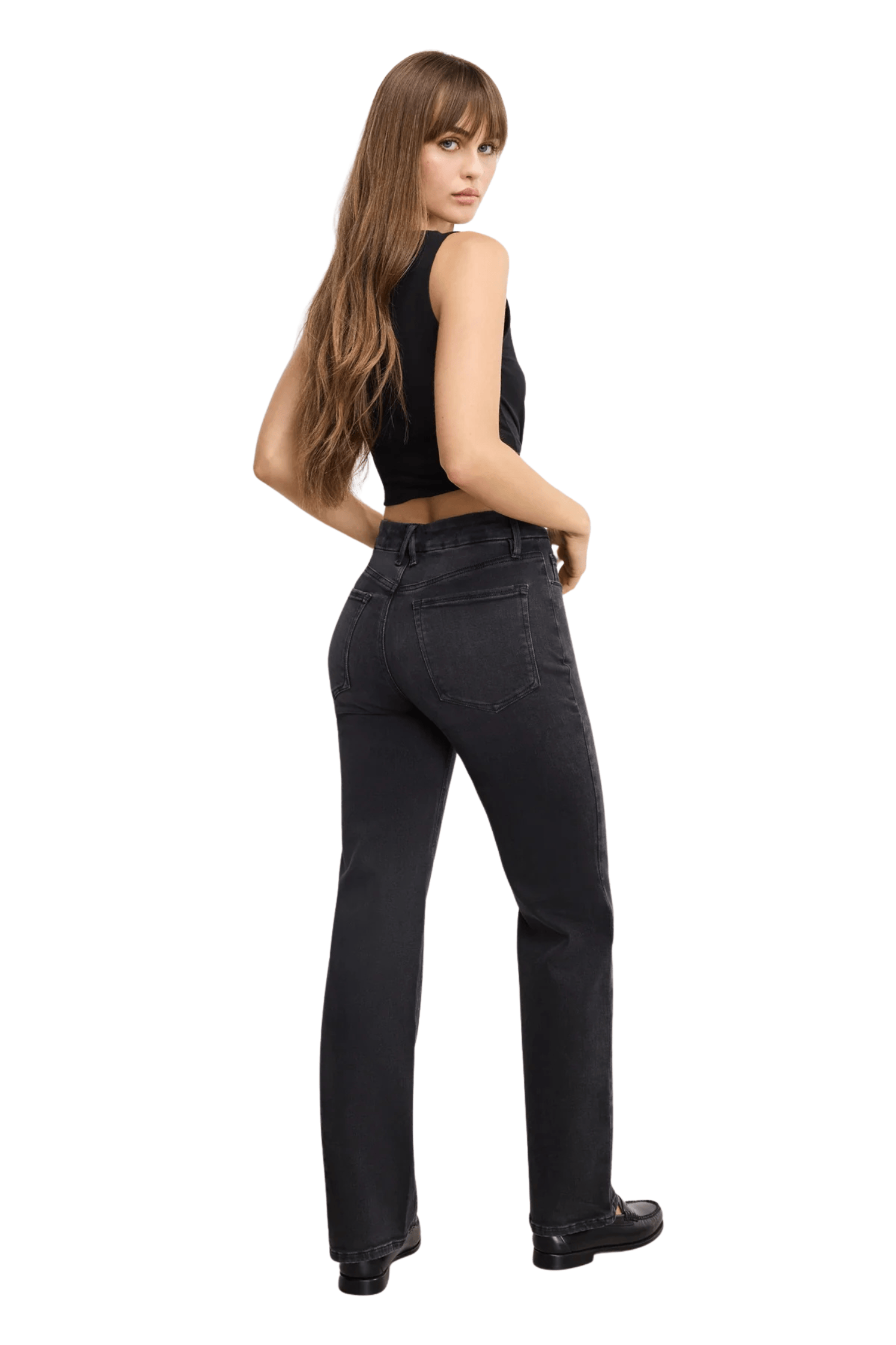 - Straight legs