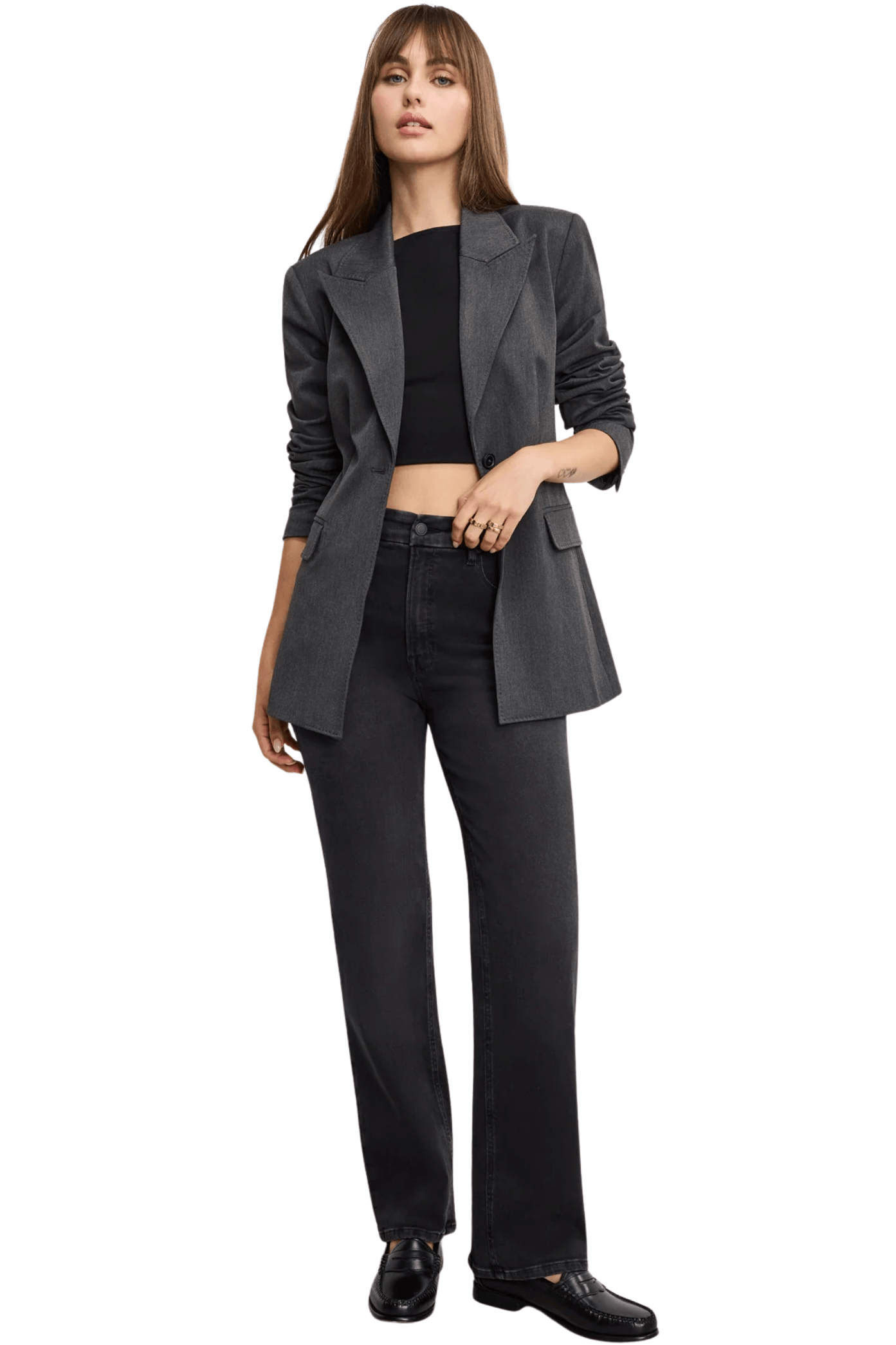 - Front zip-fly closure
