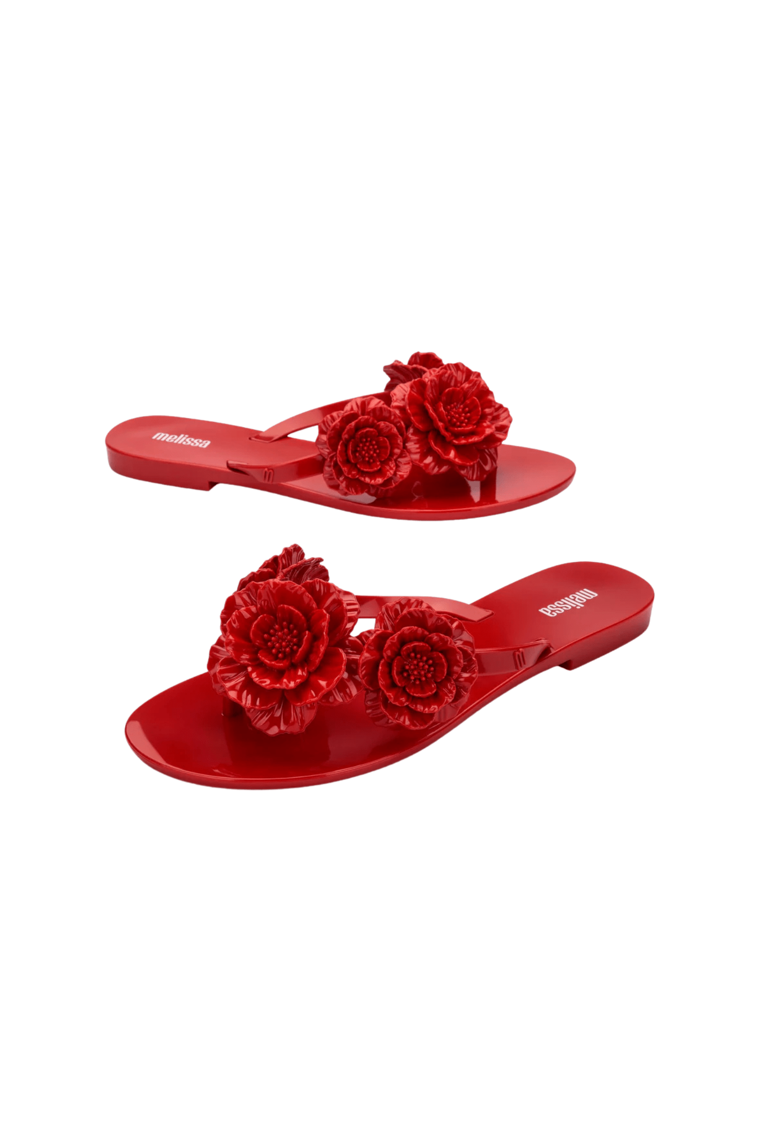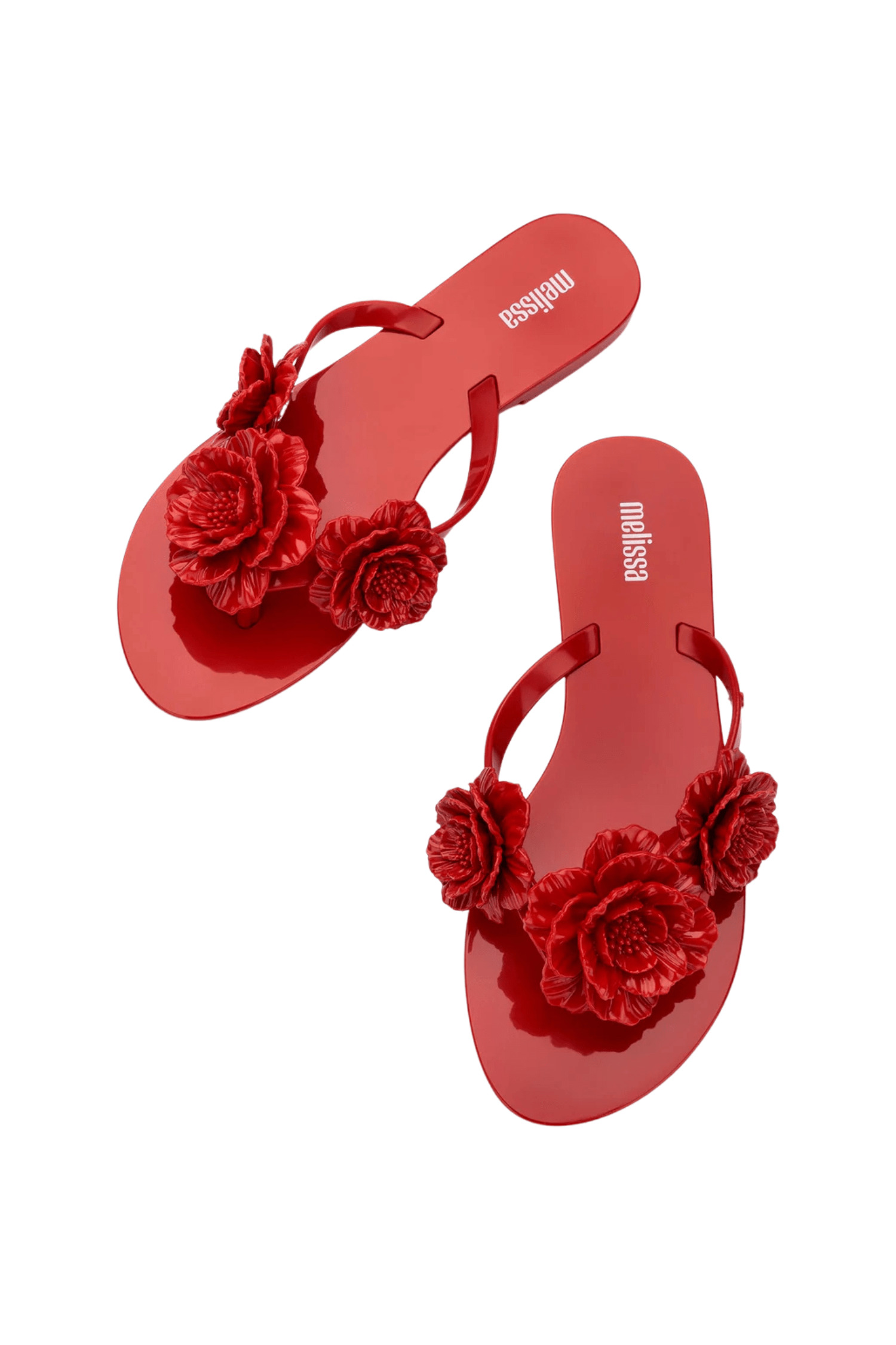• Flip flops with floral appliqués for a feminine touch