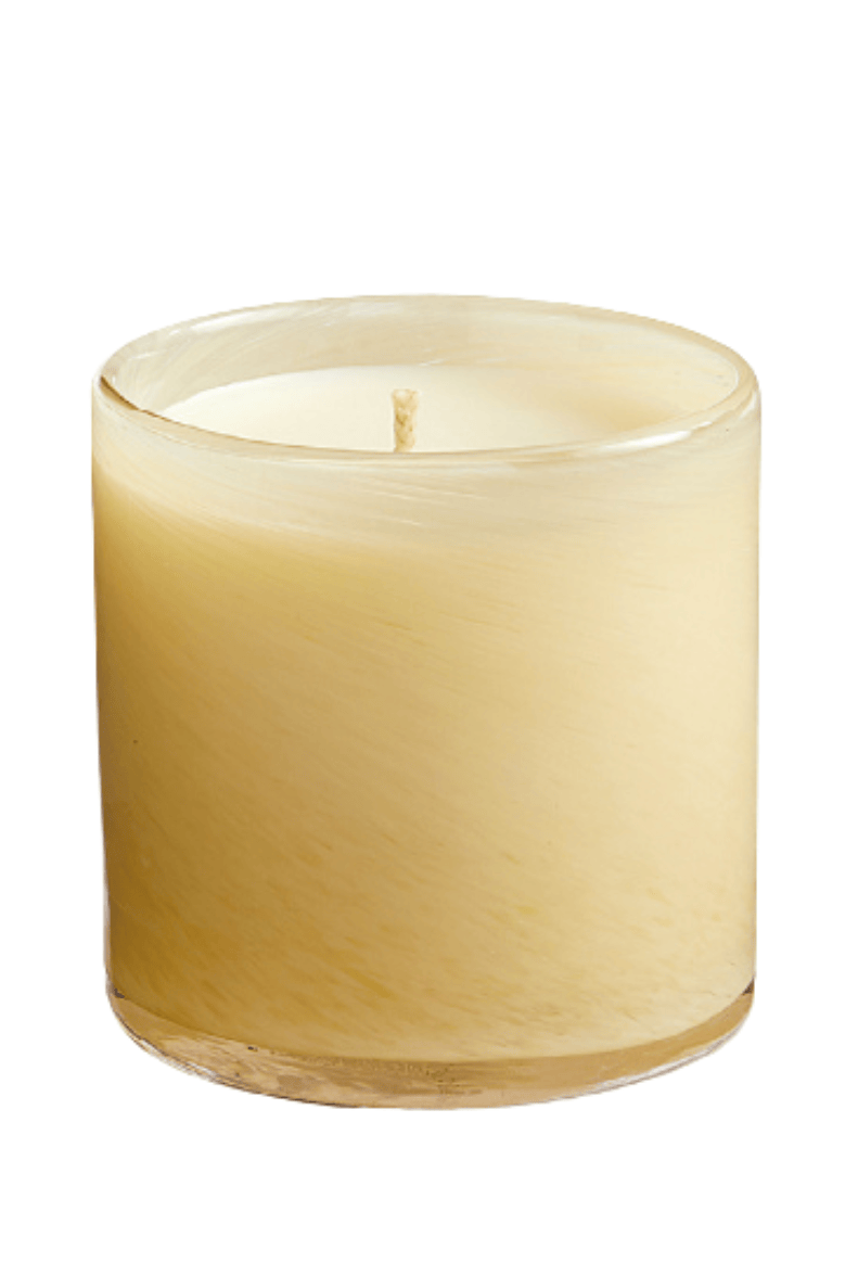 - Hand blown glass candle vessel with unique color and pattern variation