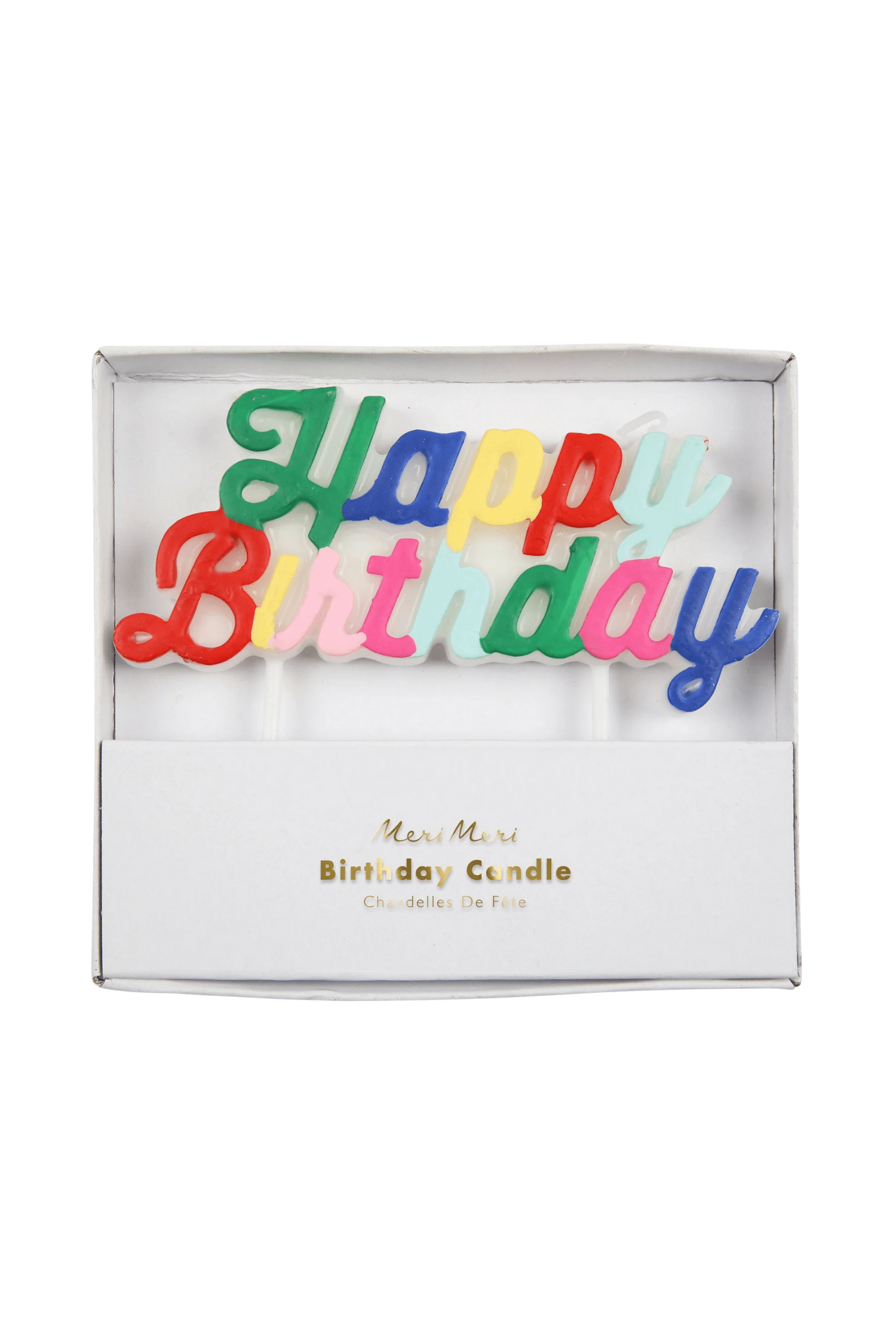Elegant Design – Multicolored candle spelling out "Happy Birthday" in a beautiful curling script