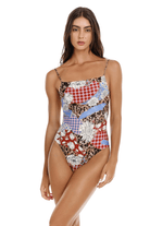 - Reversible one-piece swimsuit with floral patchwork and wild mix prints