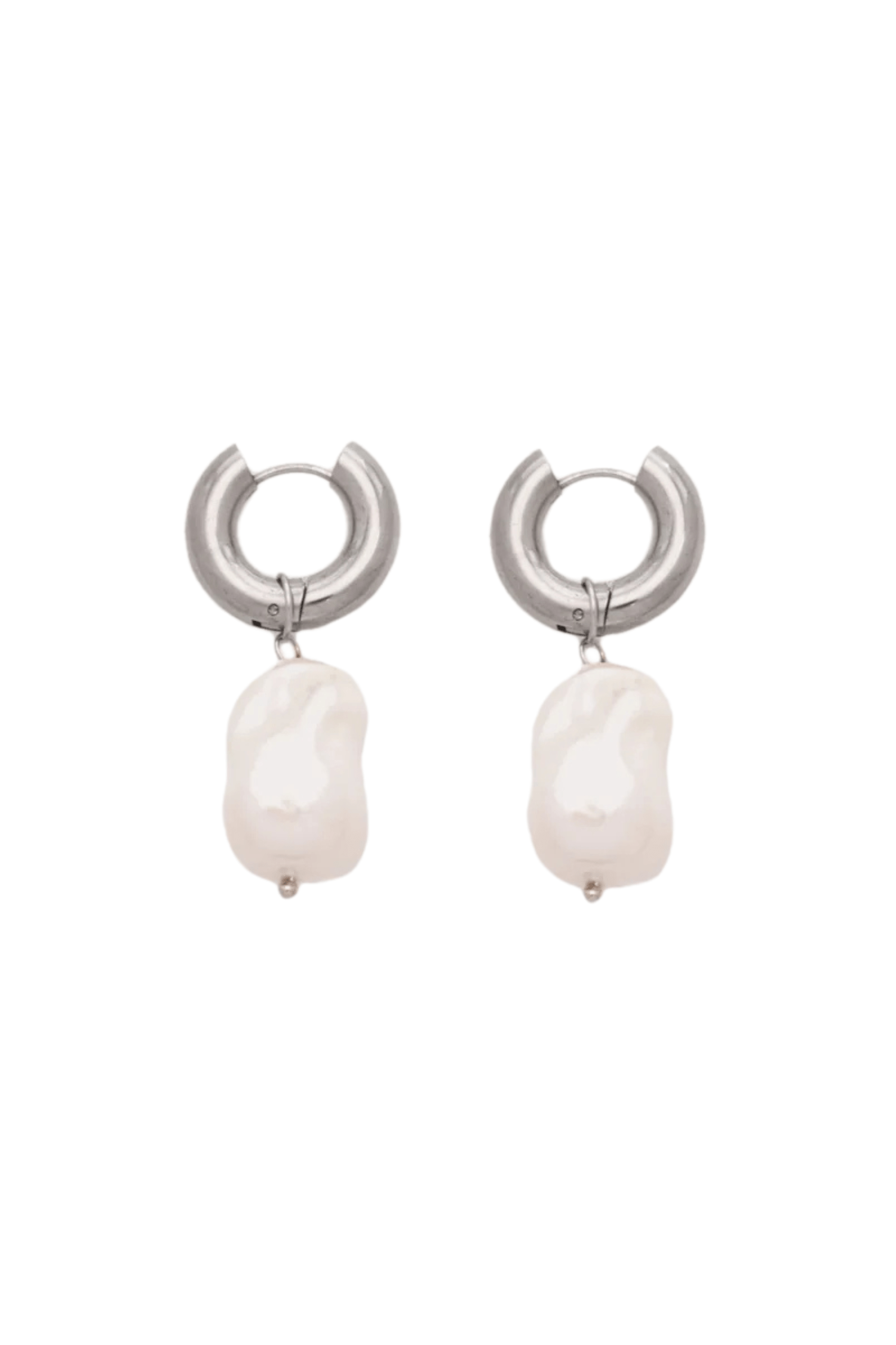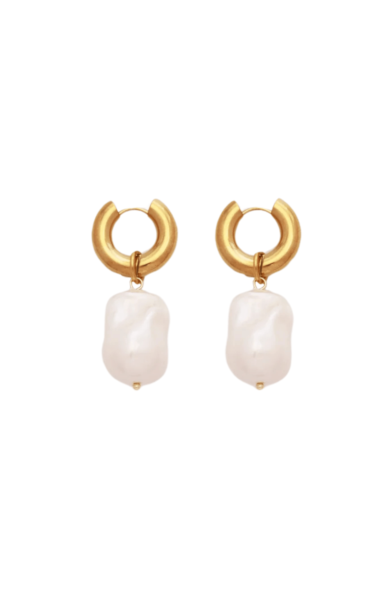• Huggie Earrings with Pearl Drop – Elegant design featuring a 0.7" pearl drop