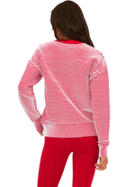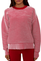 • Two-tone striping that changes direction on the hem, cuffs and neckline