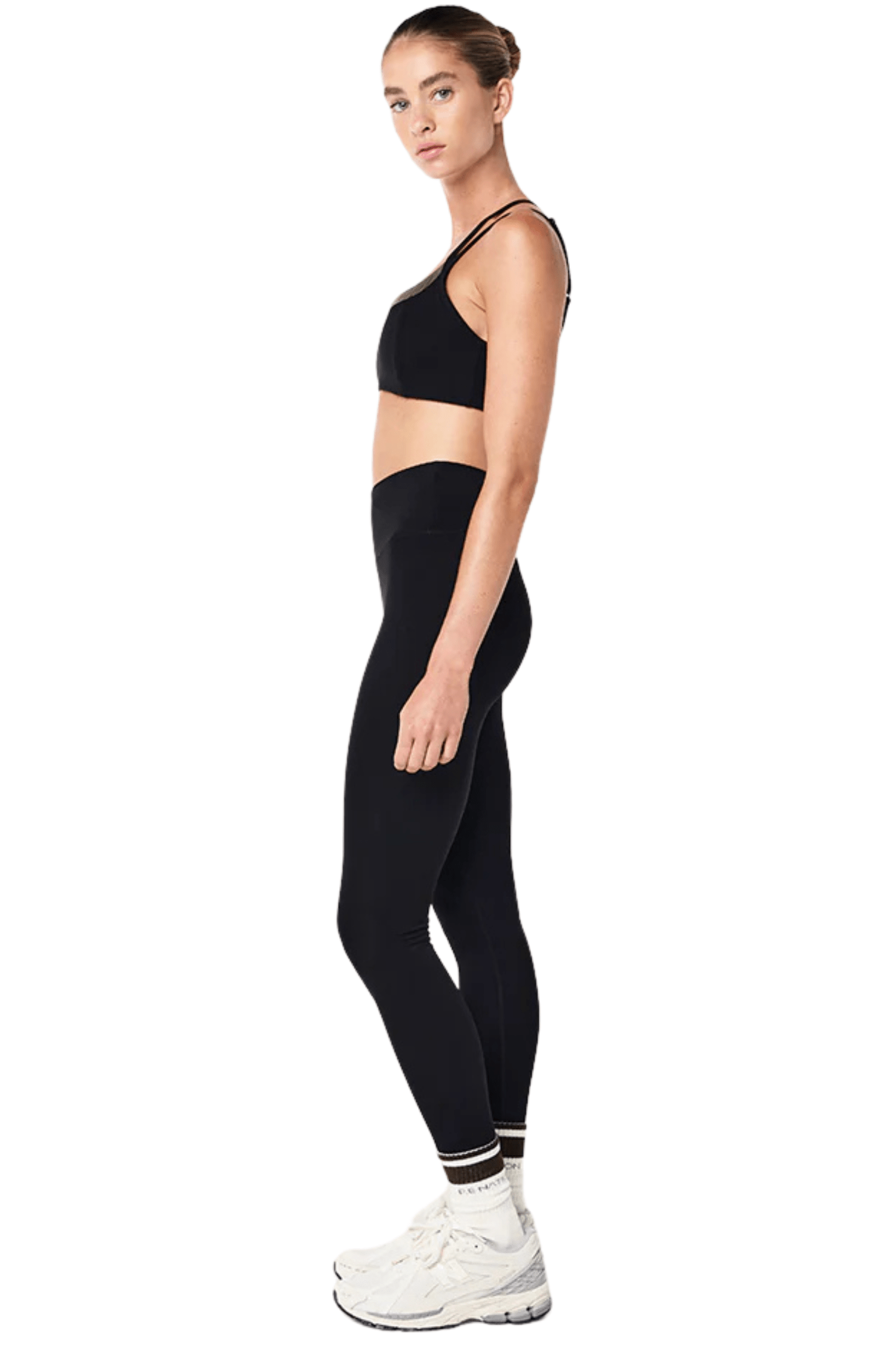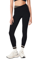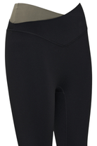 - High-rise full-length legging with contrast crossover waistband detail
