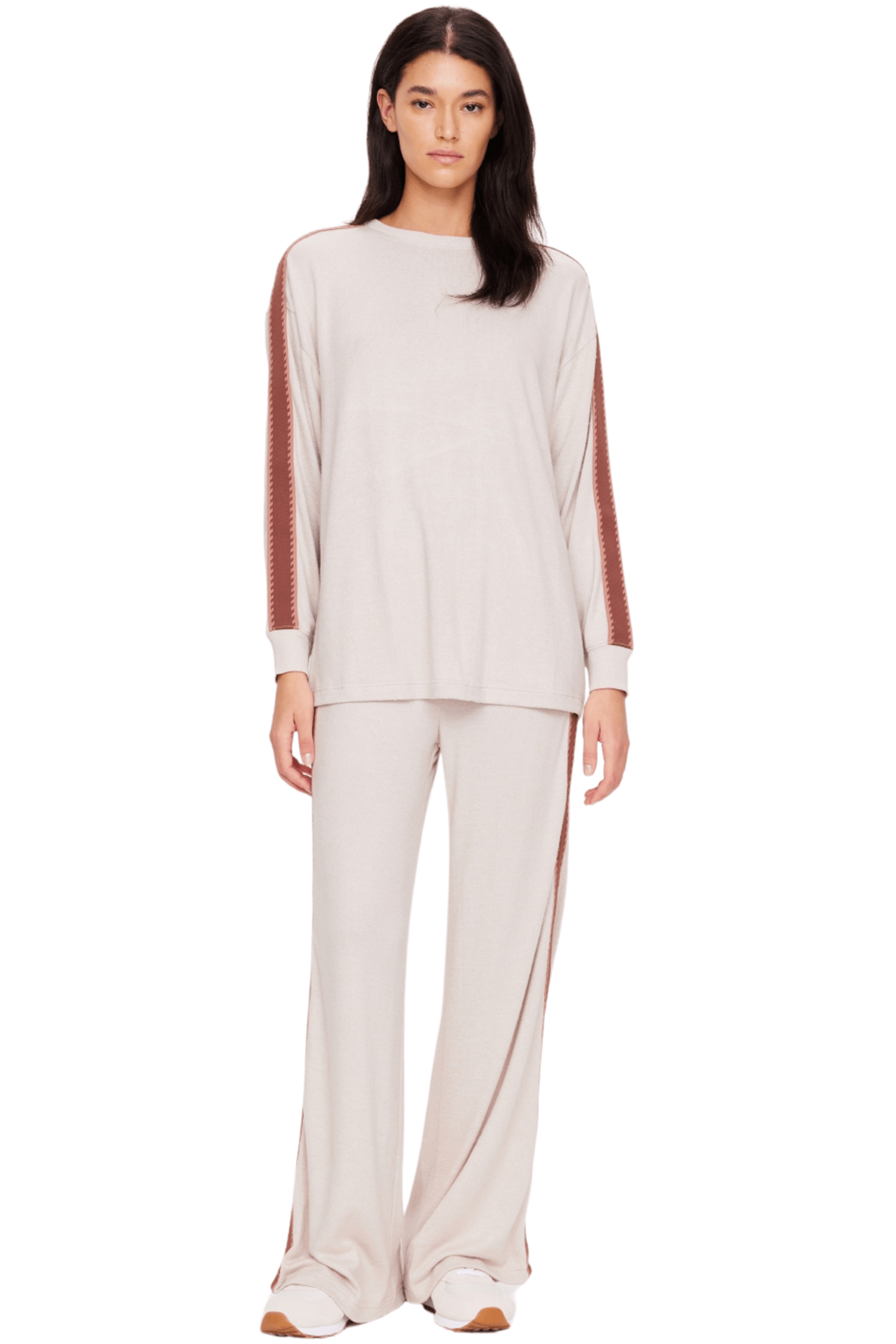 - Knitted tape detailing down the sides
