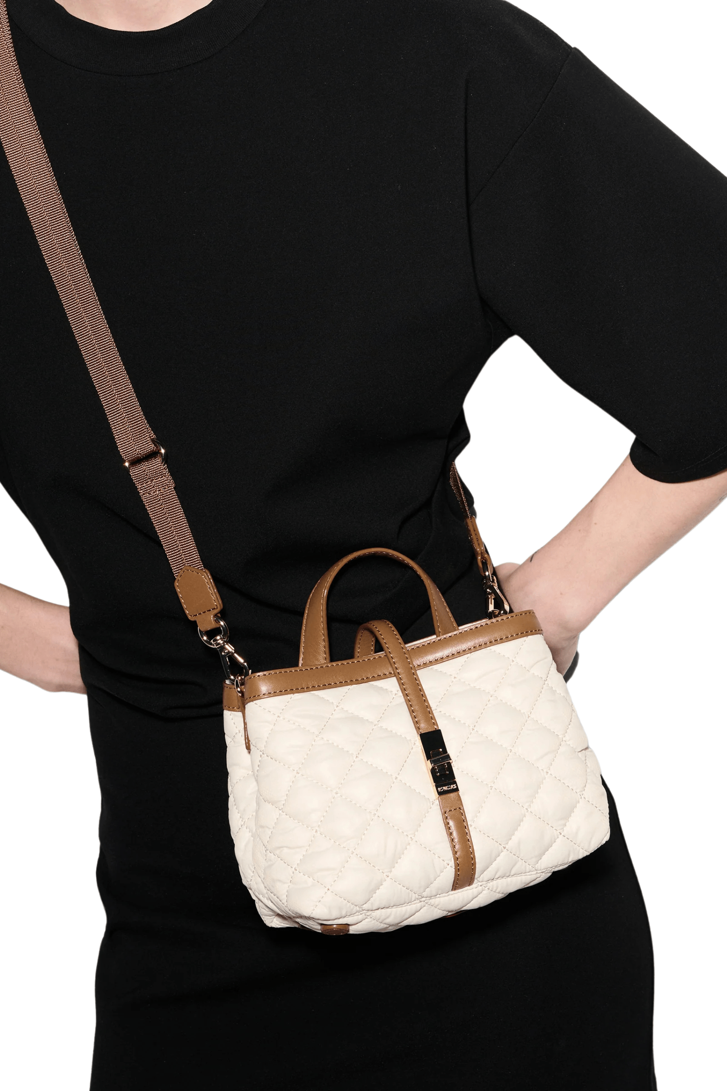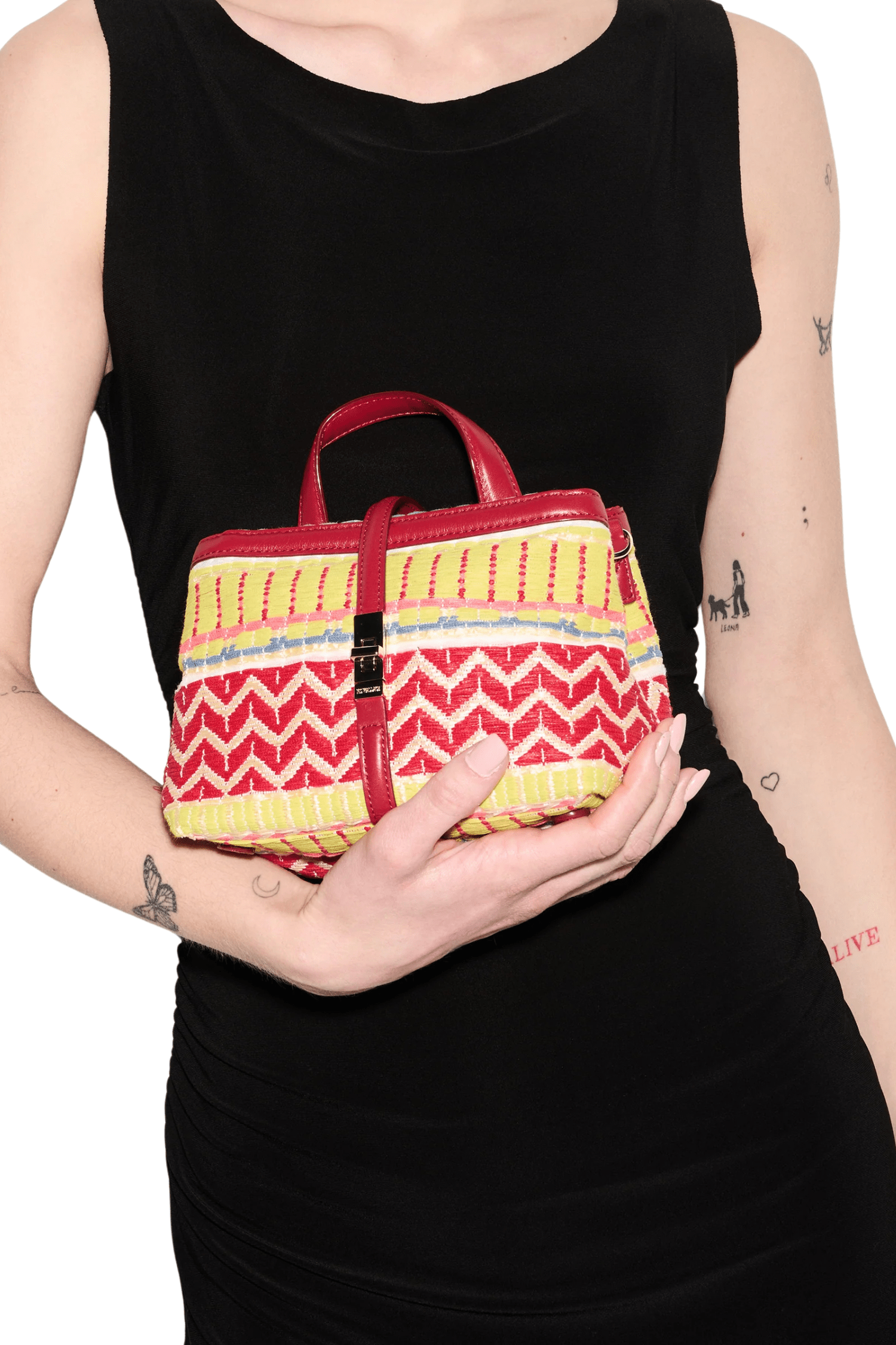 - Mini top handle bag with zip top closure