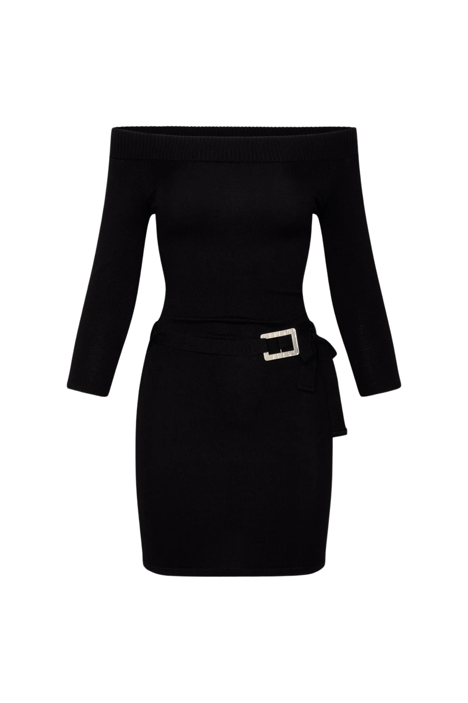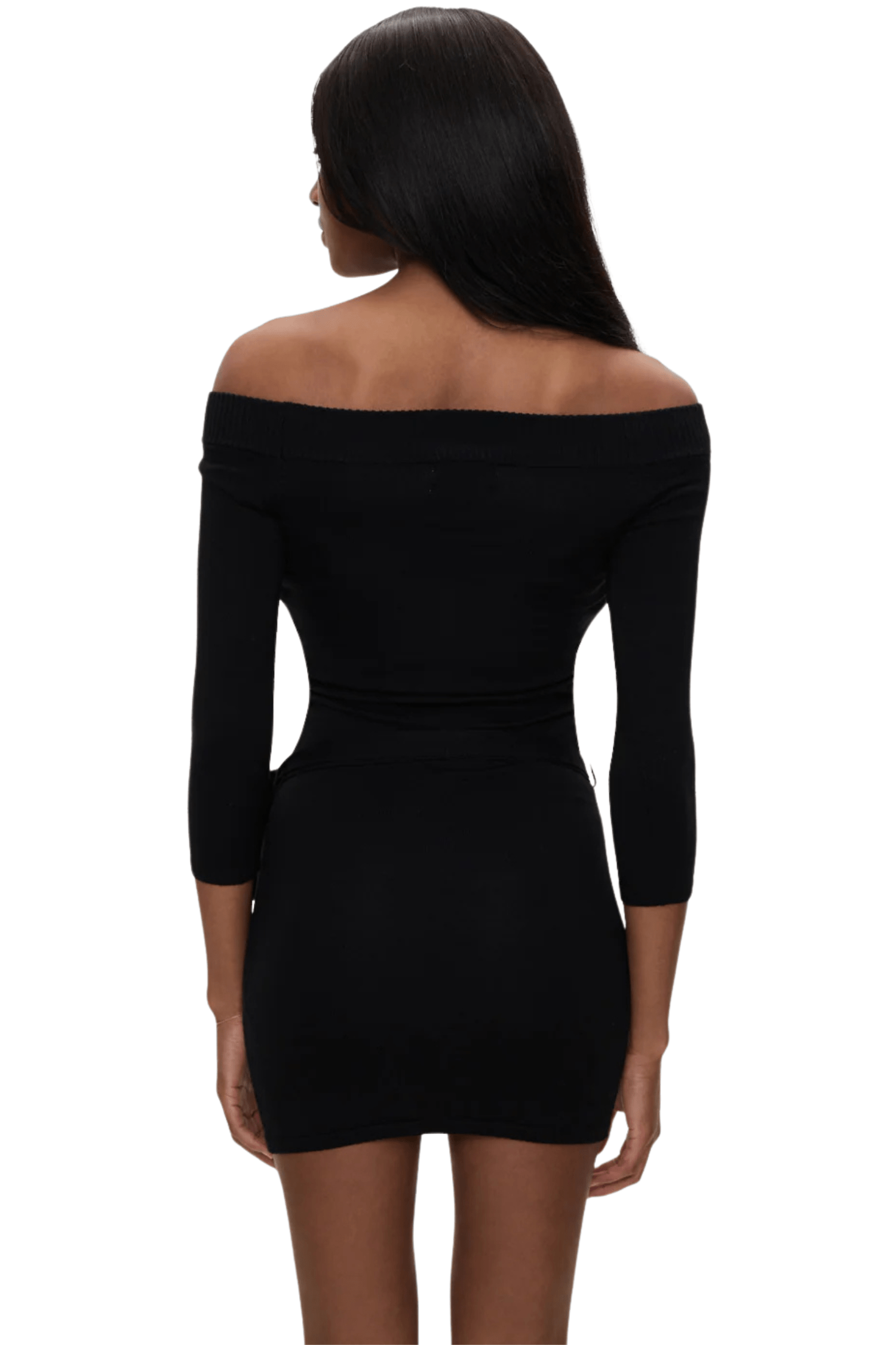 - Fitted mini dress with off-the-shoulder neckline