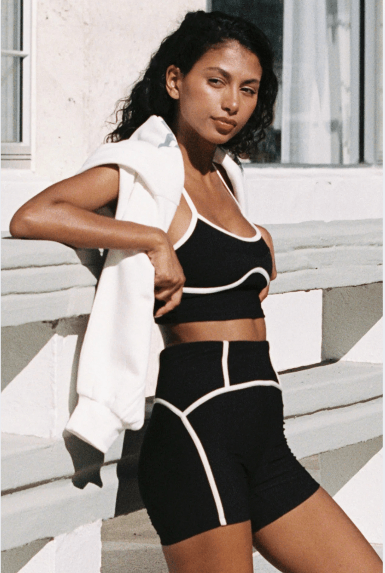 Ribbed biker shorts with compressive fit