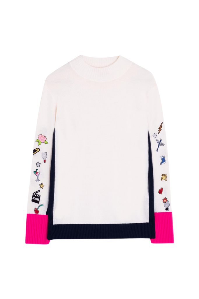 Vilagallo Knitwear Turtleneck Embroidery Ecru & Pink Navy