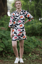 - Horizontal spaced tuck pleating detail on sleeves and bottom of dress