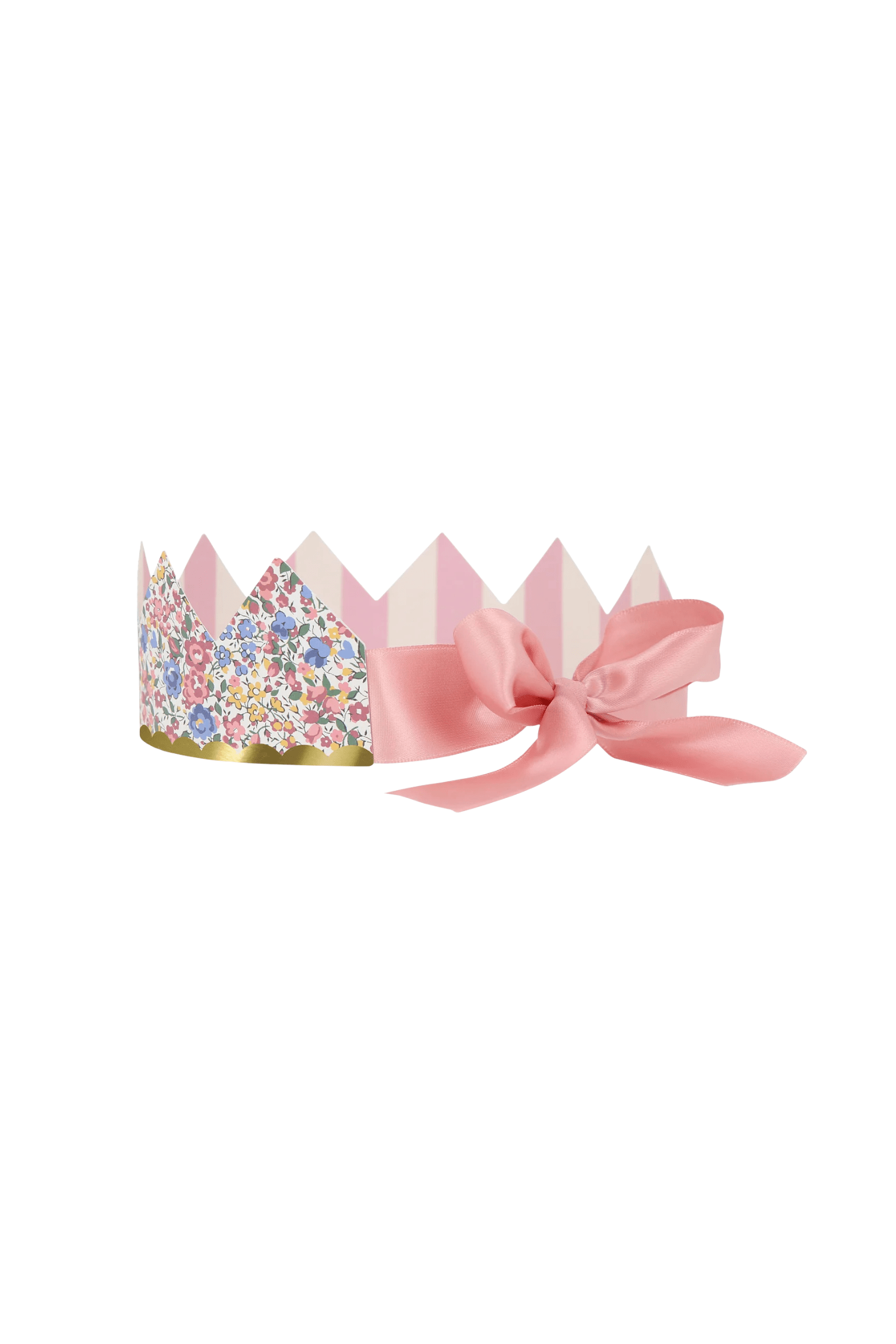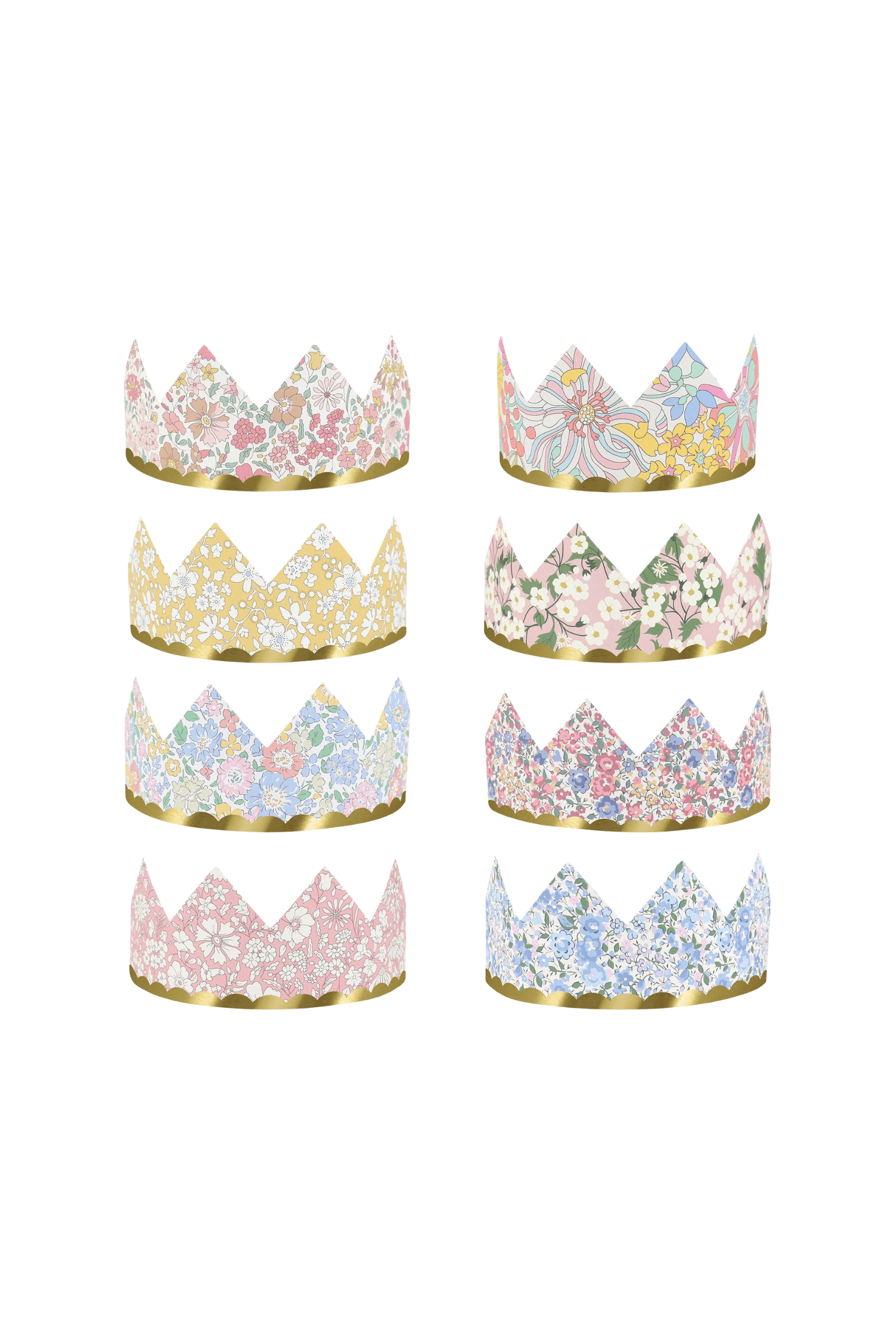 - 8 Paper party crowns, each with a different floral Liberty print design